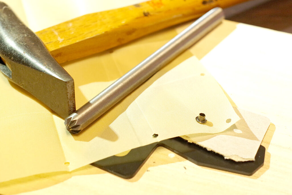最後は、ハトメを打ち込んで固定させるための道具、菊割り棒。