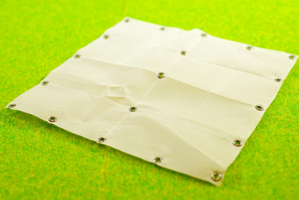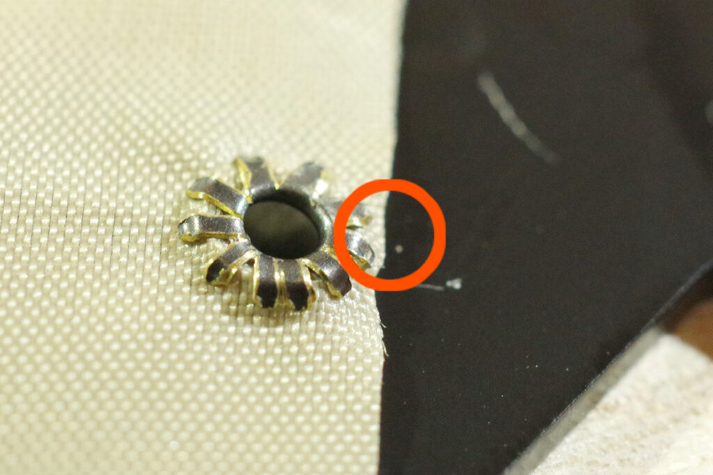 問題は製作に時間がかかることでした。最も時間がかかっていたのは、タープのグロメット(ハトメ)を針と糸で取り付ける作業。
