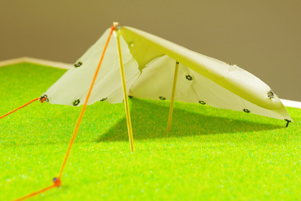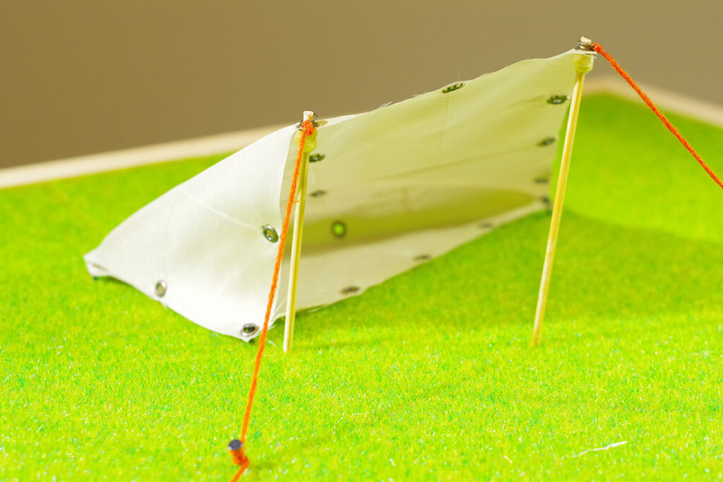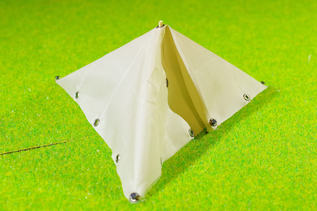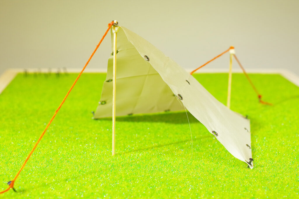 以前作ったミニチュアタープ。いろいろ張り方を試せていいのですが…
