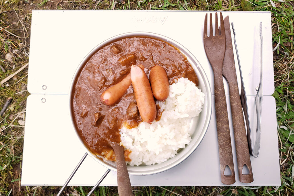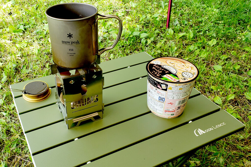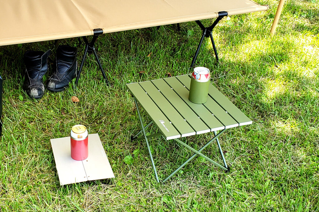 一瞬で設営できてソロキャンプに最高の相棒なのですが、いかんせんテーブルの高さが低い!