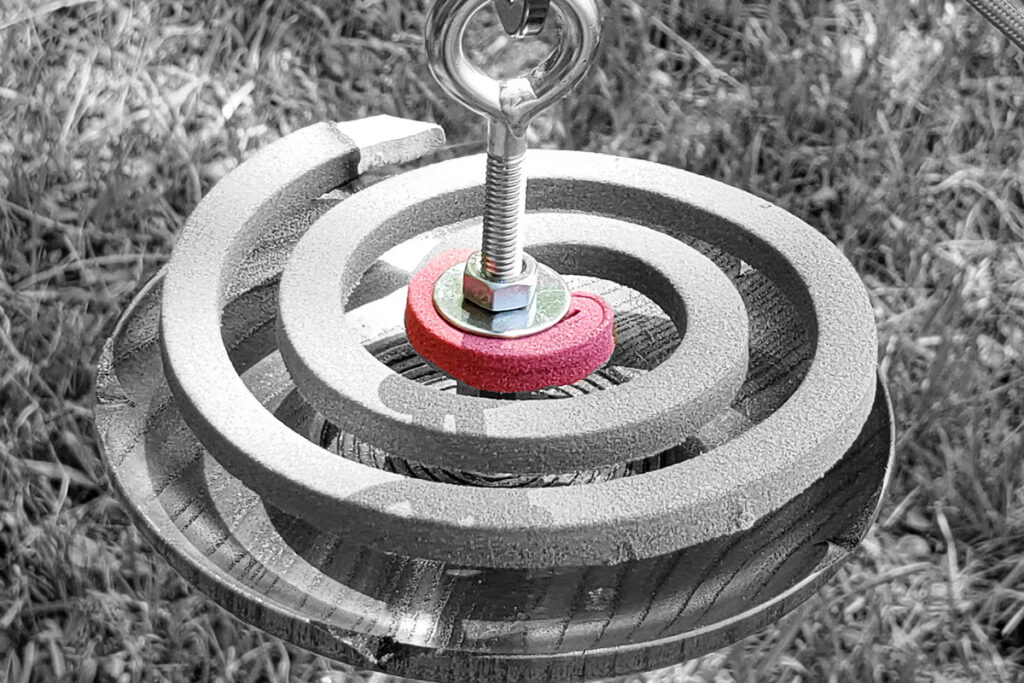 なお、丸座金2枚の間に、蚊取り線香を通します。