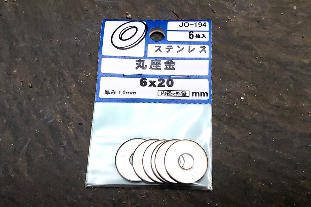 ナットと小さな丸座金が2つついていてお得感があります。ちなみに、ナットは使用します。